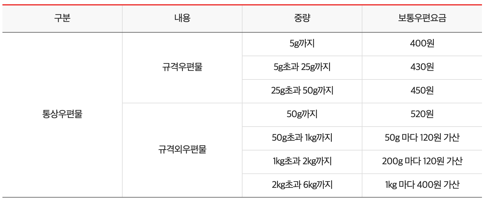 우체국 우편요금