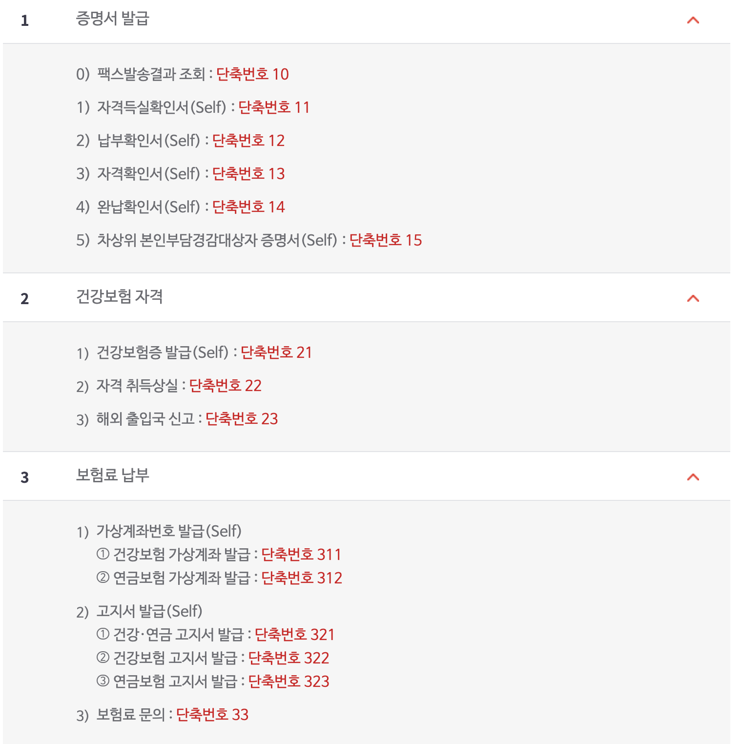 발신자 부담이기 때문에 이점 유의하셔서 전화통화 하시면 좋을 것 같습니다. 콜센터로 전화를 거는 경우, 담당업무에 따라 안내ㄴ되는 단축번호가 있는데요. 단축번호는 아래와 같습니다. 해당되는 업무에 따라 단축번호를 누르시면 보다 빠르게 업무를 처리하실 수 있습니다.