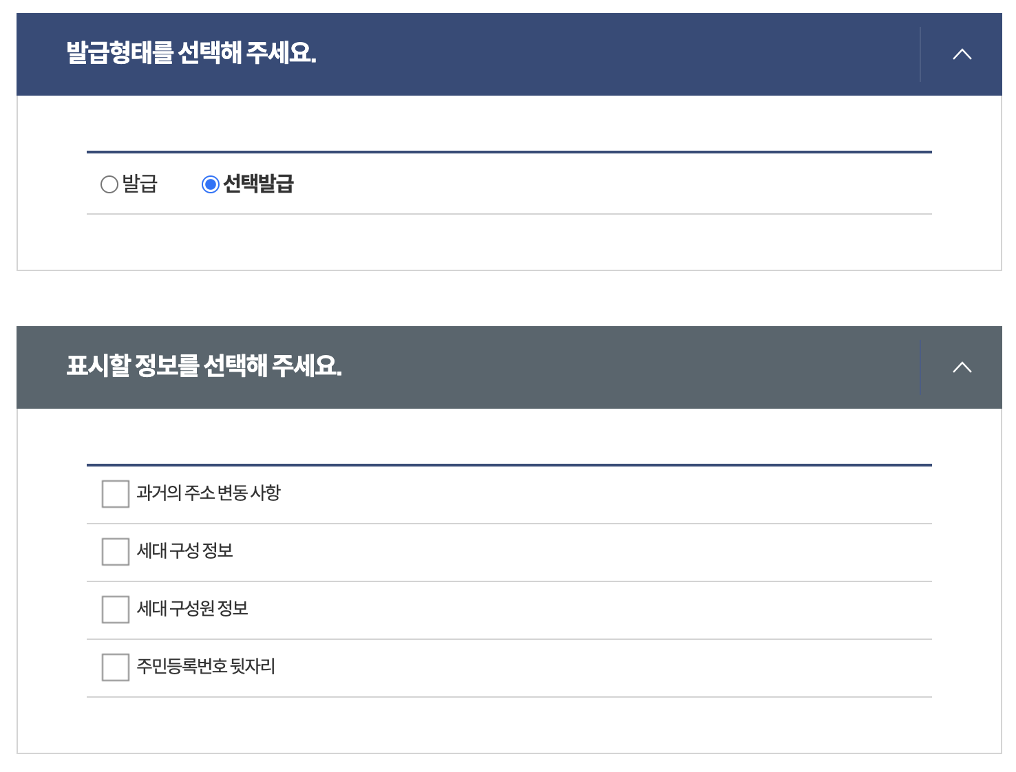 ✔️ 선택발급 선택시 | 표시할 정보 선택