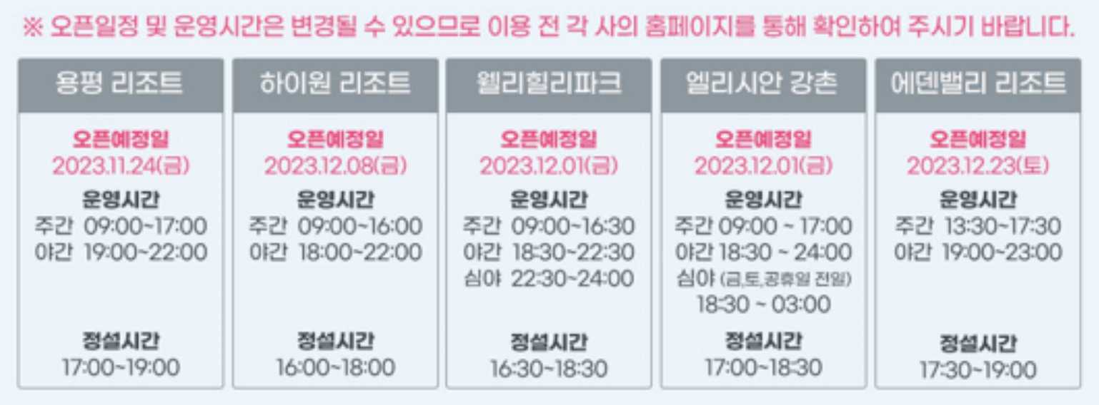 2024 스키장 오픈일 | 스키장 운영시간 | 스키장 셔틀이용