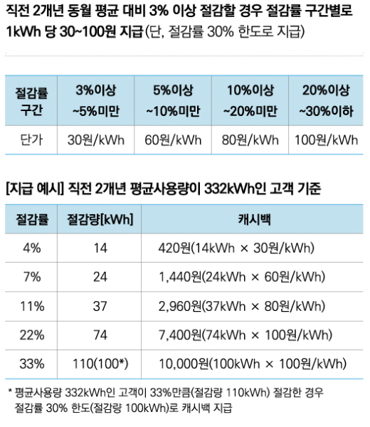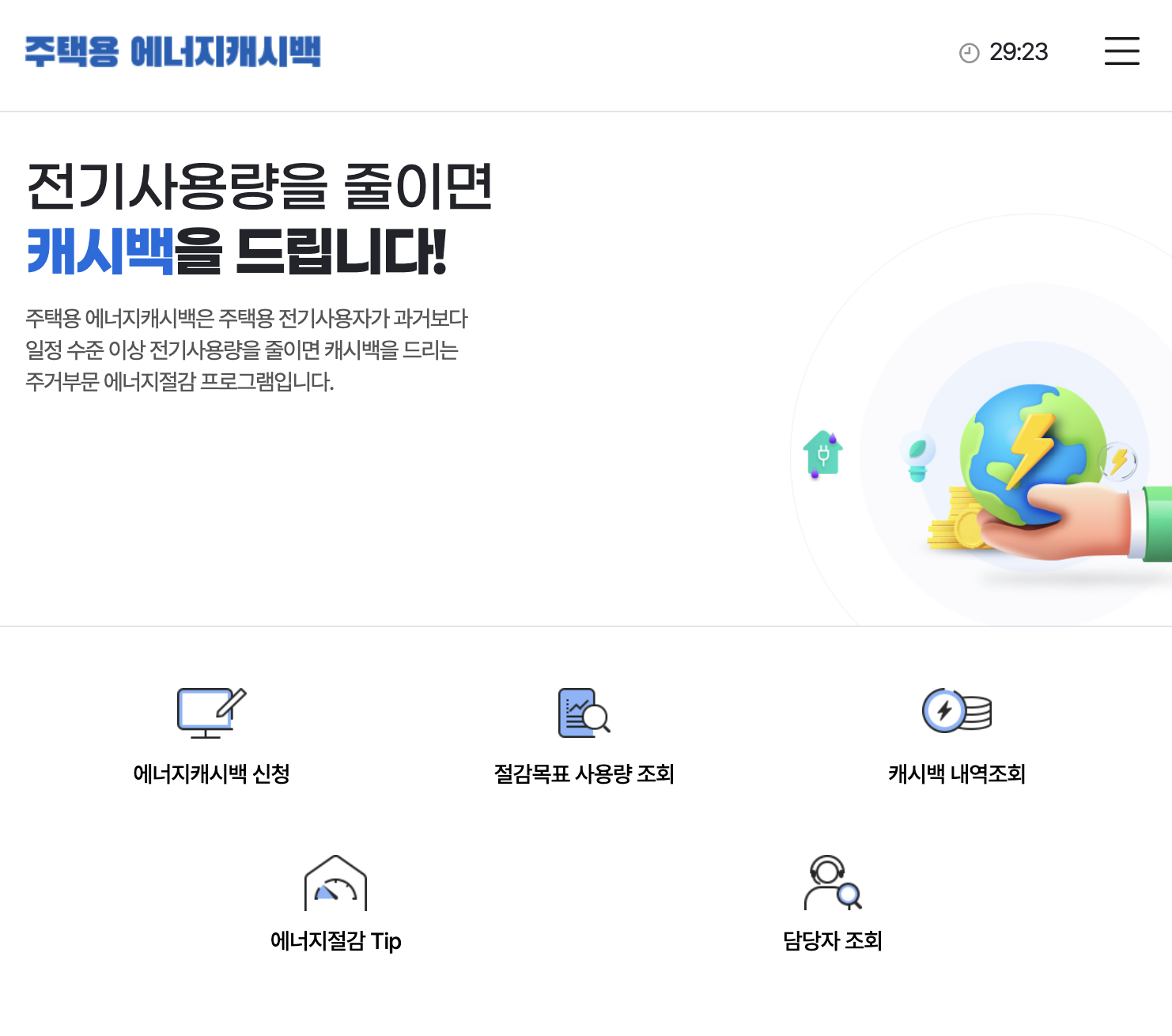 주택용 에너지캐시백이란 2022년부터 시행된 제도로 에너지 소비절약을 증진하고 전기요금 부담을 완화새주기 위해 시작된 것입니다. 주택용 전기사용자가 과거에 사용한 전기량보다 일정 수준 이상 전기사용량을 줄이면 캐시백을 통해 에너지 소비절약을 증진하는 것이죠.