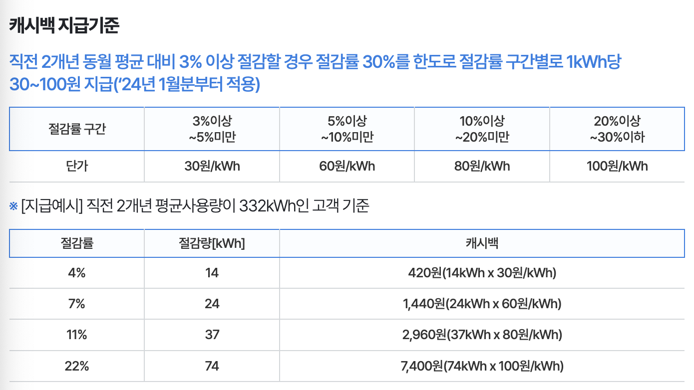 전기세를 할인받을 수 있는 대상이 아니라면 에너지캐시백 가입을 통해 전기요금을 할인받을 수 있습니다.