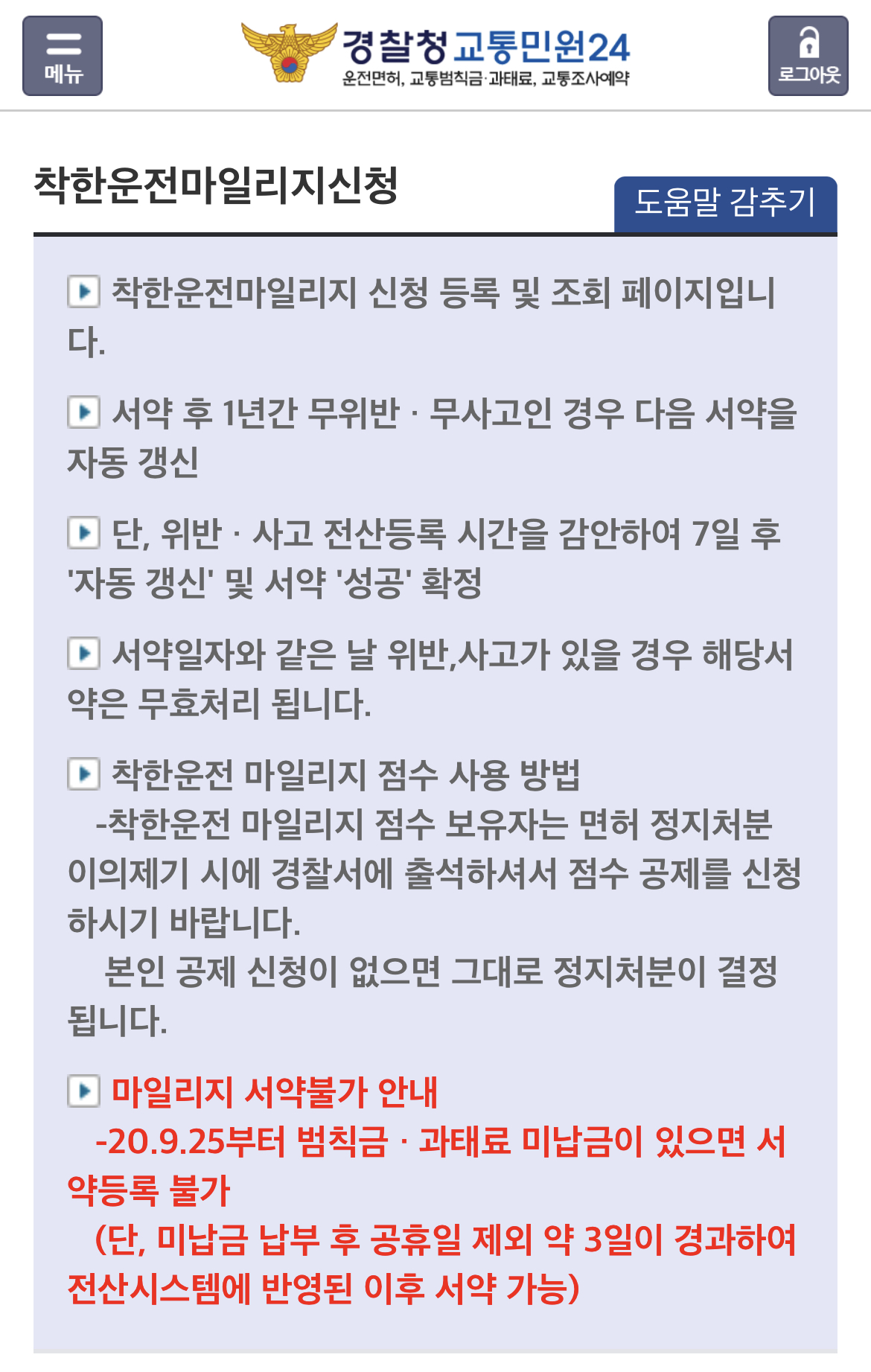 착한운전마일리지 신청