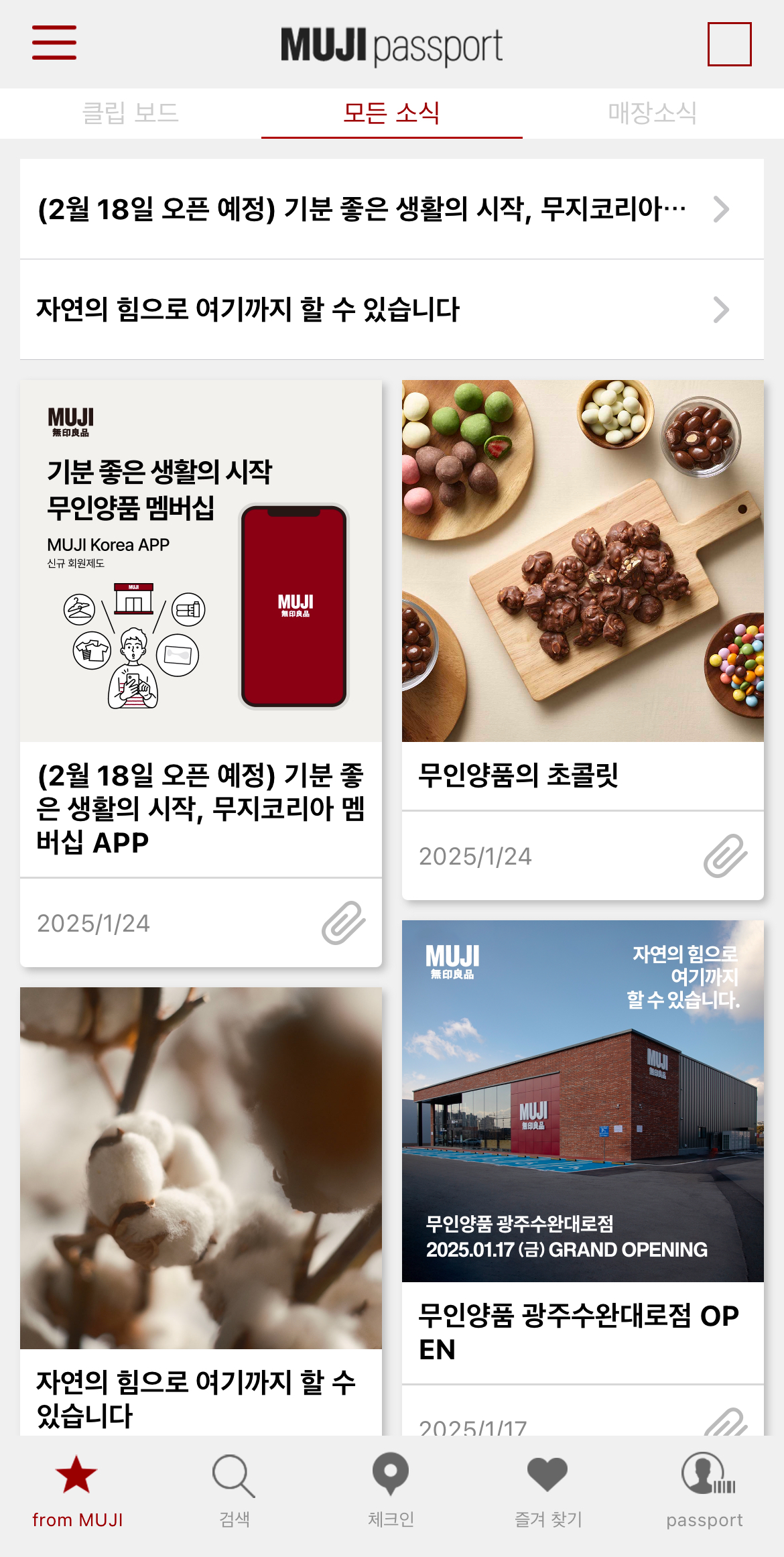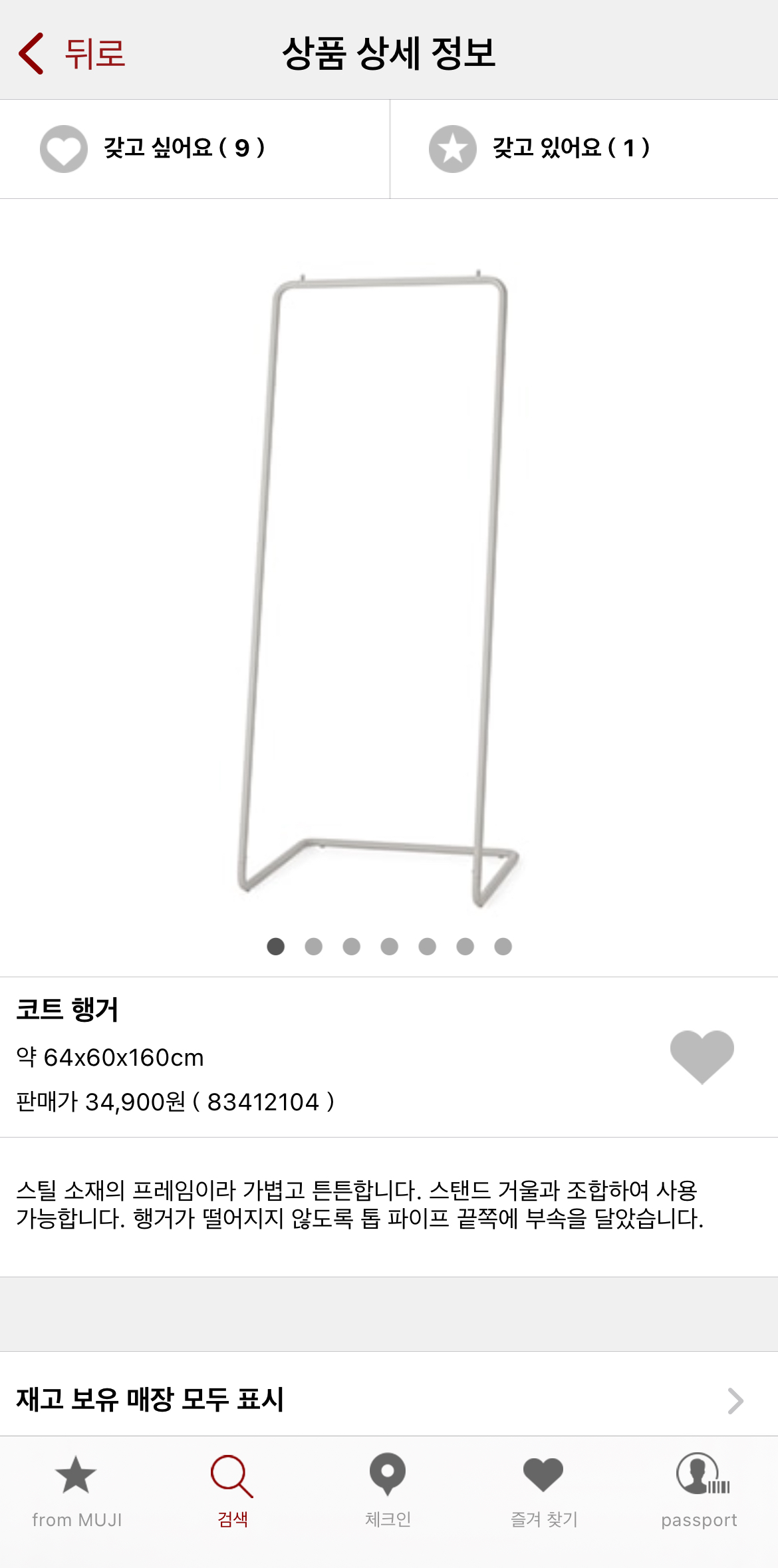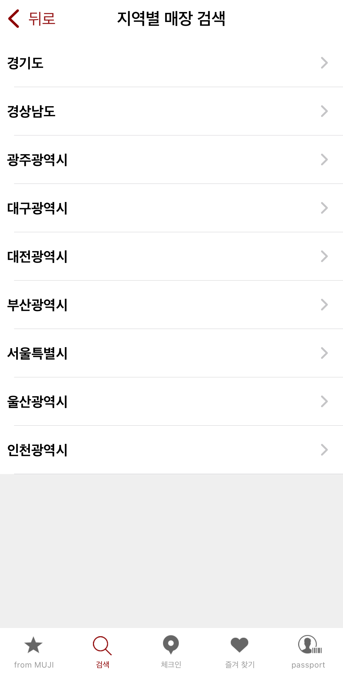 무인양품은 MUJI passport라는 어플을 운영하고 있습니다. 무인양품 어플을 이용하면 쉽고 빠르게 내가 원하는 물건이 어느 지점에 있는지 확인할 수 있습니다.