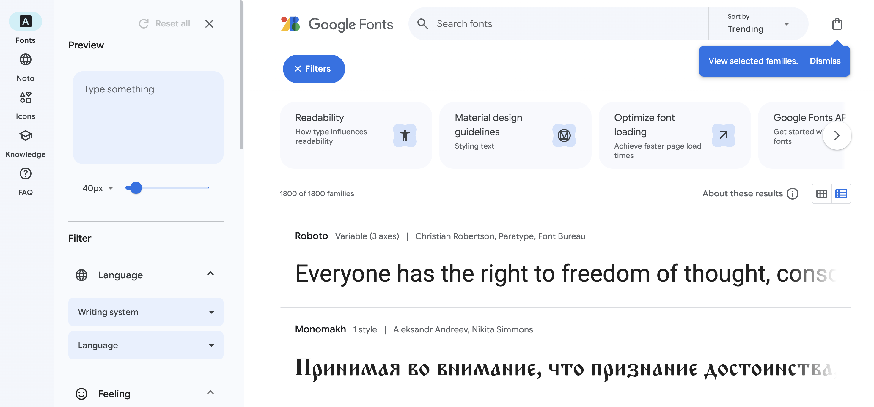 - 폰트 검색 및 필터링: 언어별, 스타일별 필터 기능 제공