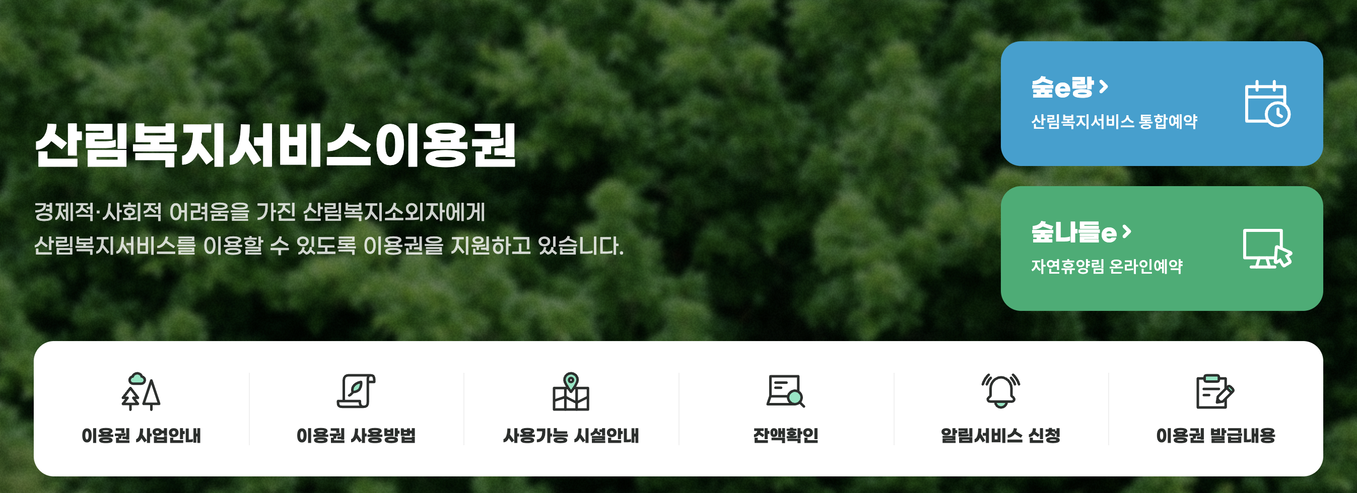 ✔️ 온라인 신청: 산림복지서비스이용권 누리집