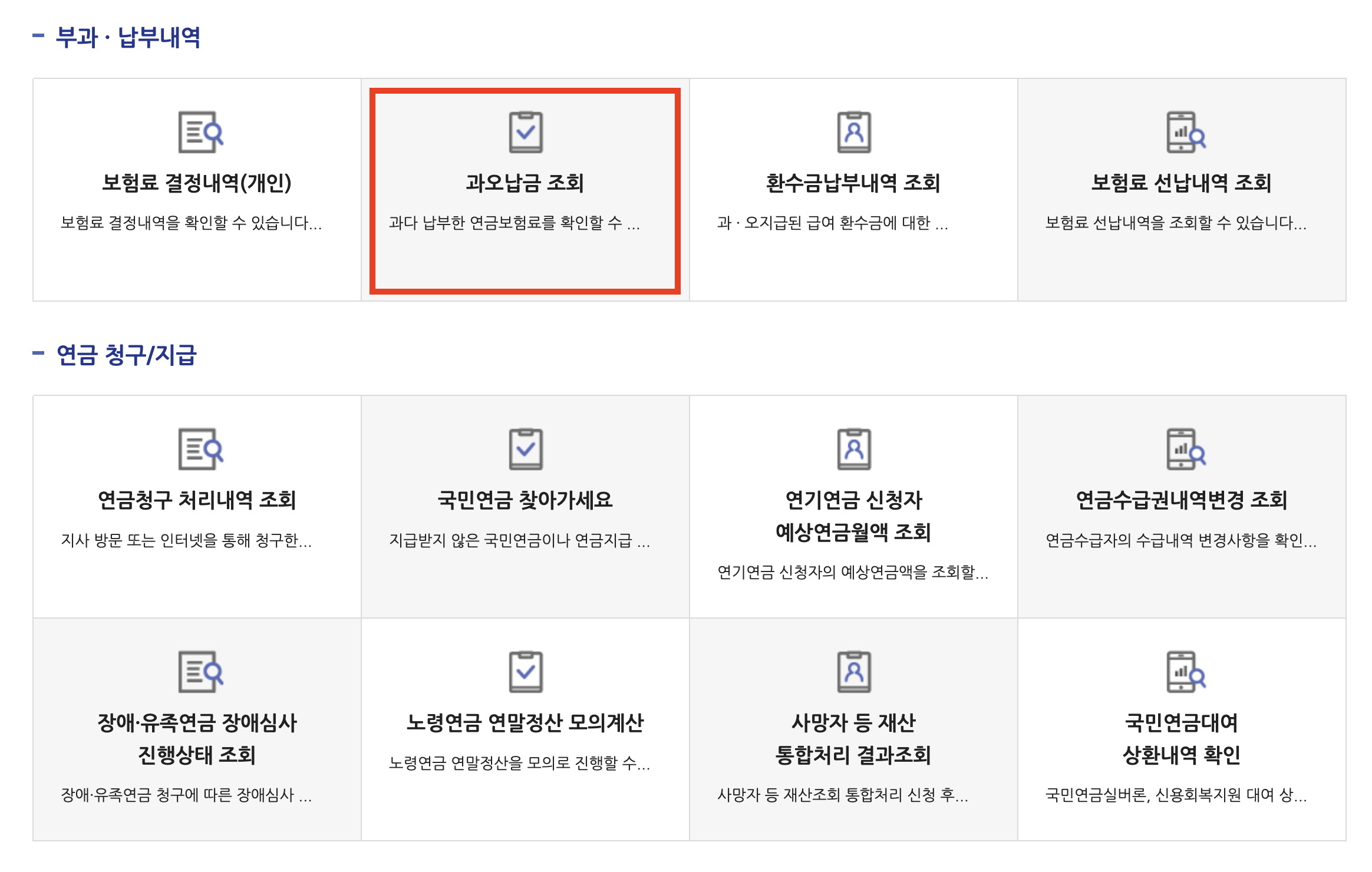 국민연금 과오납 조회