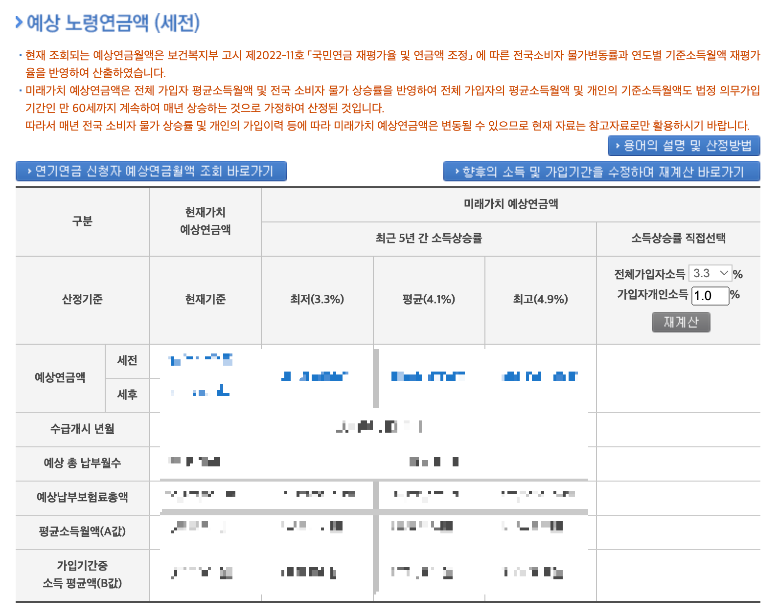국민연금 가입내역 및 예상연금액 조회