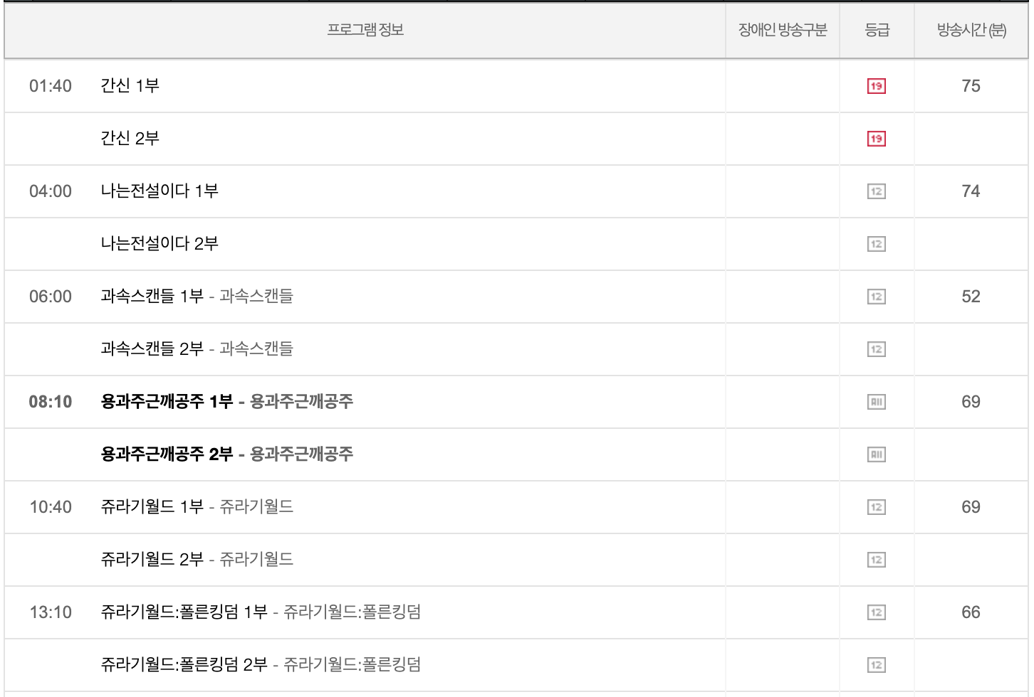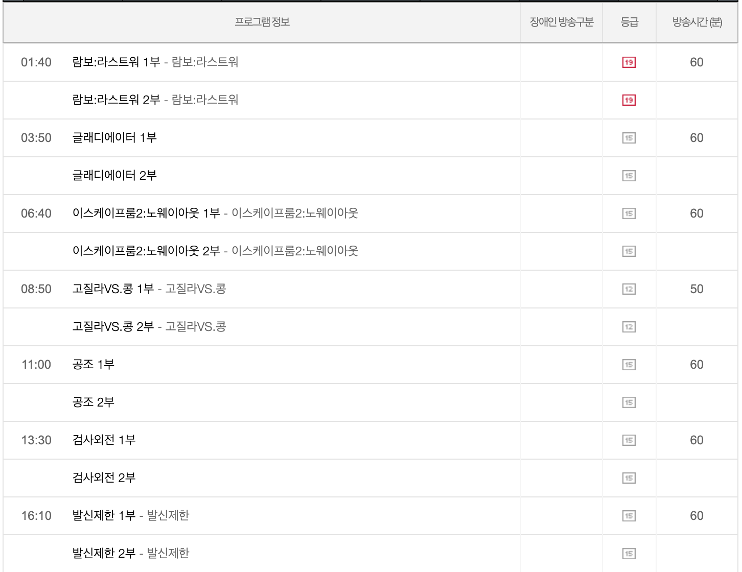| EBS1 | 21:40 | 분노의 질주: 더 오리지널 |