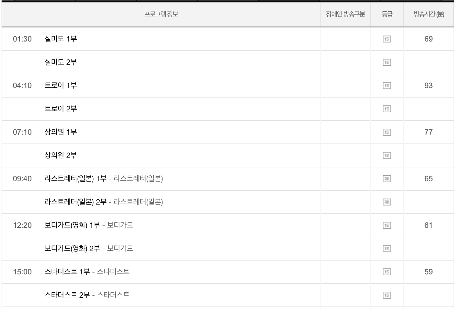 | EBS1 | 21:40 | 분노의 질주: 더 오리지널 |