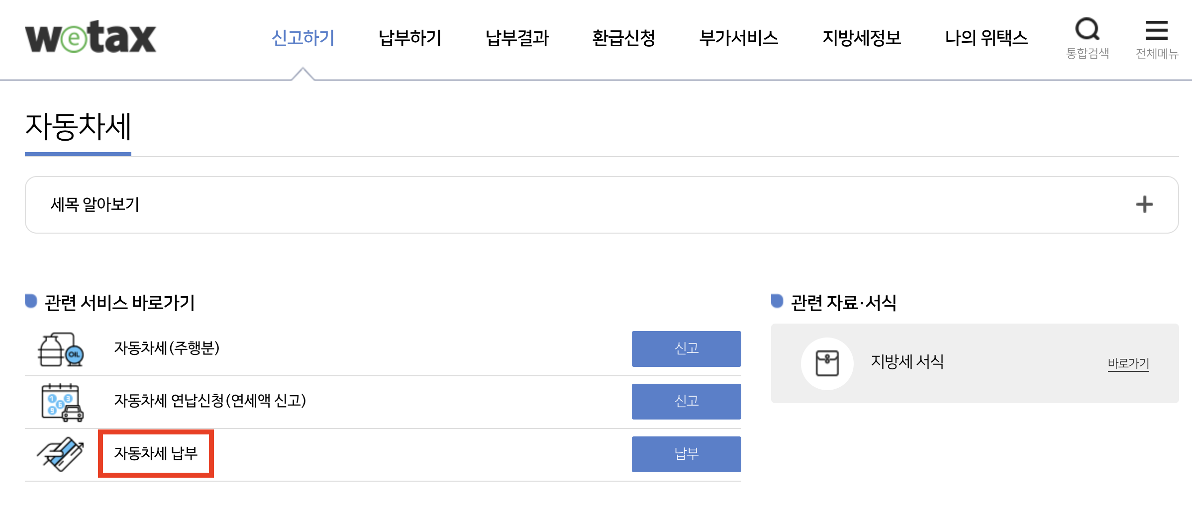 - 신고하기 - 자동차세 납부
