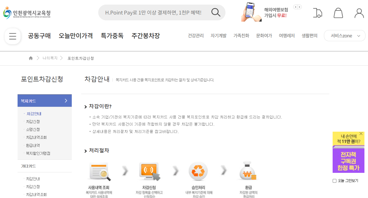 • 온라인복지관-포인트 차감 신청-기타 카드-차감 신청에서 신청